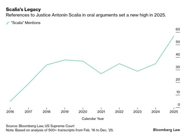 Mentions of Justice Scalia Surge at Conservative-Dominated Court